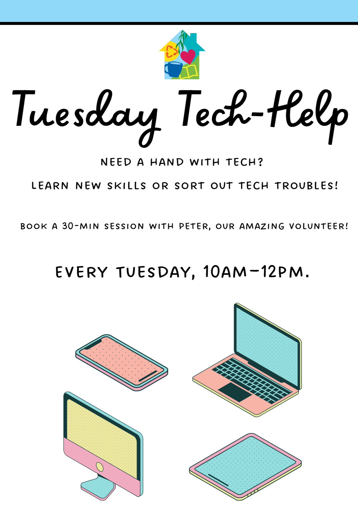 Learn new skills or sort out tech troubles. Book a 30- min session with our amazing volunteer, Peter!